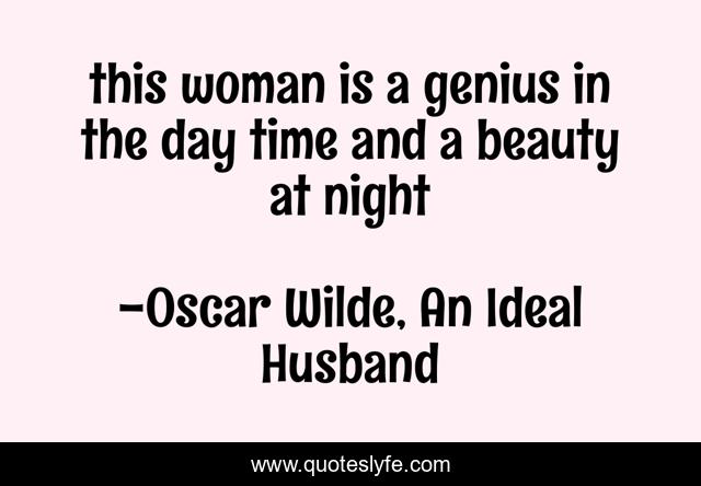 This page presents the quote "this woman is a genius in the day time and a beauty at night". Author of this quote is Oscar Wilde, An Ideal Husband. .