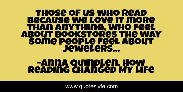 This page presents the quote "those of us who read because we love it more than anything, who feel about bookstores the way some people feel about jewelers...". Author of this quote is Anna Quindlen, How Reading Changed My Life. This quote is about books, bookstores,.
