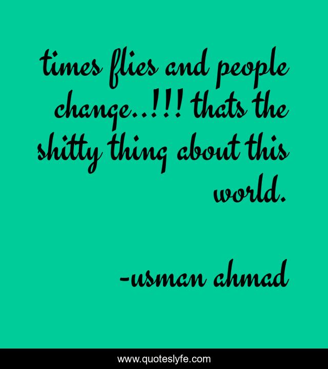 This page presents the quote "times flies and people change..!!! thats the shitty thing about this world.". Author of this quote is usman ahmad. This quote is about people, friends, time,.