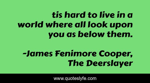 This page presents the quote "tis hard to live in a world where all look upon you as below them.". Author of this quote is James Fenimore Cooper, The Deerslayer. This quote is about prejudice, self-worth,.