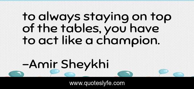 This page presents the quote "to always staying on top of the tables, you have to act like a champion.". Author of this quote is Amir Sheykhi. .