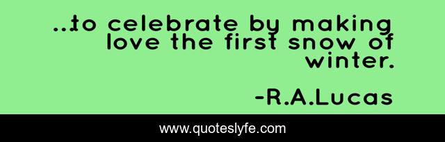This page presents the quote "…to celebrate by making love the first snow of winter.". Author of this quote is R.A.Lucas. This quote is about morning, waking-up, winter, snow,.