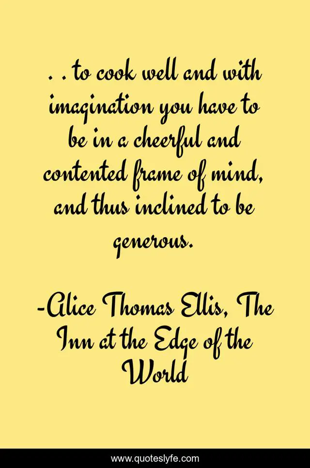 "Alice Thomas Ellis, The Inn at the Edge of the World Quotes." Quoteslyfe.com, 2025. Fri. 05 Dec. 2025. <https://www.quoteslyfe.com/quote/to-cook-well-and-with-imagination-you-220633>.