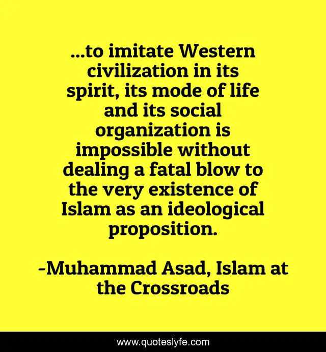 "Muhammad Asad, Islam at the Crossroads Quotes." Quoteslyfe.com, 2025. Sun. 07 Dec. 2025. <https://www.quoteslyfe.com/quote/to-imitate-Western-civilization-in-its-spirit-187656>.