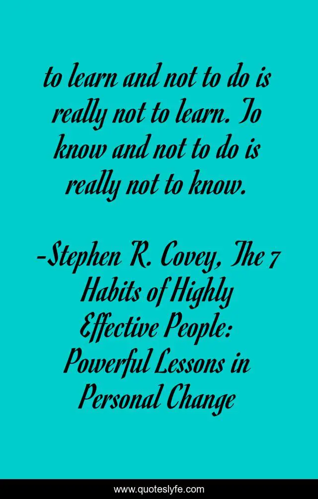 "Stephen R. Covey, The 7 Habits of Highly Effective People: Powerful Lessons in Personal Change Quotes." Quoteslyfe.com, 2025. Fri. 05 Dec. 2025. <https://www.quoteslyfe.com/quote/to-learn-and-not-to-do-is-116690>.