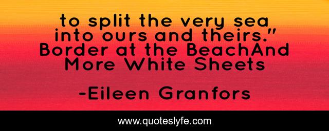 This page presents the quote "to split the very sea into ours and theirs." Border at the BeachAnd More White Sheets". Author of this quote is Eileen Granfors. This quote is about eileen-granfors, limitless, multicultural, poetry, ocean,.