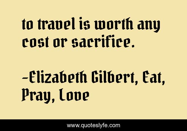 This page presents the quote "to travel is worth any cost or sacrifice.". Author of this quote is Elizabeth Gilbert, Eat, Pray, Love. .