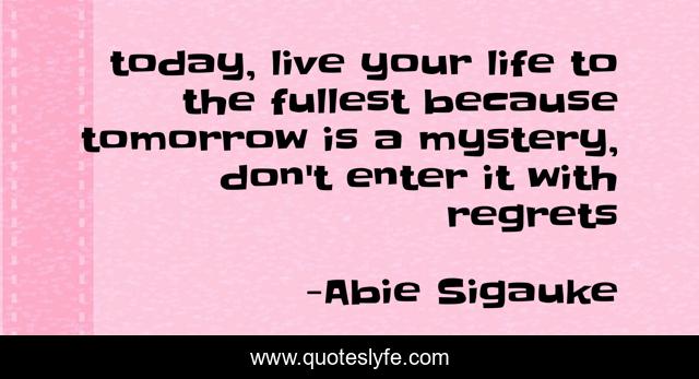 This page presents the quote "today, live your life to the fullest because tomorrow is a mystery, don't enter it with regrets". Author of this quote is Abie Sigauke. This quote is about inspirational-attitude, freedom-of-choice,.
