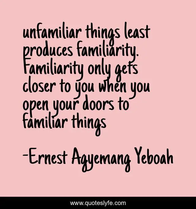 "Ernest Agyemang Yeboah Quotes." Quoteslyfe.com, 2025. Fri. 05 Dec. 2025. <https://www.quoteslyfe.com/quote/unfamiliar-things-least-produces-familiarity-Familiarity-only-201158>.