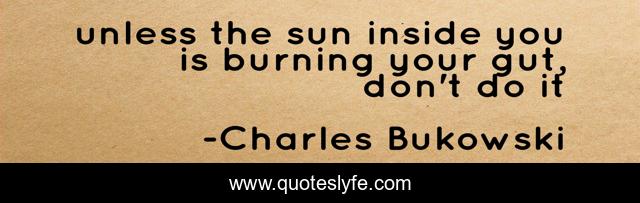 This page presents the quote "unless the sun inside you is burning your gut, don't do it". Author of this quote is Charles Bukowski. .