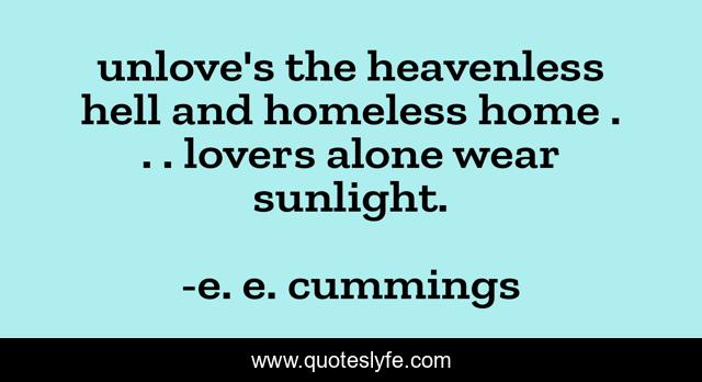 This page presents the quote "unlove's the heavenless hell and homeless home . . . lovers alone wear sunlight.". Author of this quote is e. e. cummings. This quote is about love, affection,.