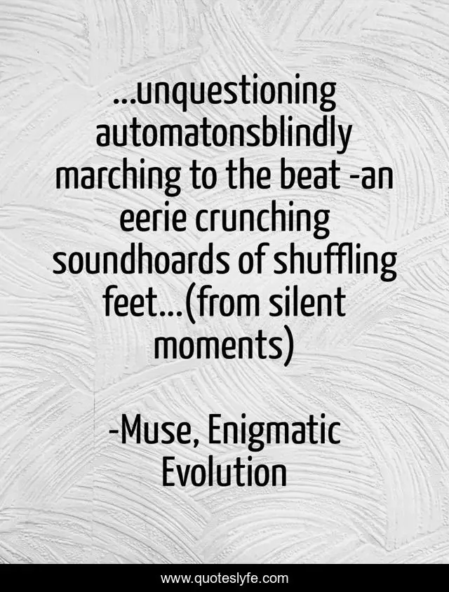 "Muse, Enigmatic Evolution Quotes." Quoteslyfe.com, 2025. Sun. 14 Dec. 2025. <https://www.quoteslyfe.com/quote/unquestioning-automatonsblindly-marching-to-the-beat-an-102768>.