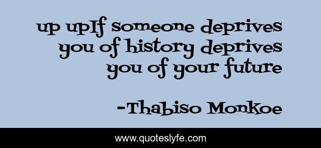 This page presents the quote "up upIf someone deprives you of history deprives you of your future". Author of this quote is Thabiso Monkoe. .