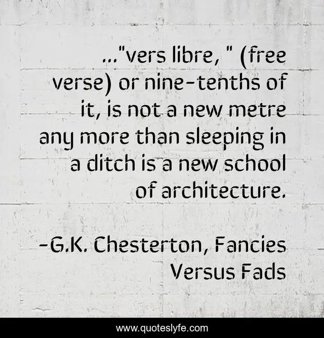 "G.K. Chesterton, Fancies Versus Fads Quotes." Quoteslyfe.com, 2025. Fri. 05 Dec. 2025. <https://www.quoteslyfe.com/quote/vers-libre-free-verse-or-nine-tenths-24434>.