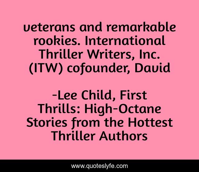 This page presents the quote "veterans and remarkable rookies. International Thriller Writers, Inc. (ITW) cofounder, David". Author of this quote is Lee Child, First Thrills: High-Octane Stories from the Hottest Thriller Authors. .