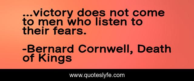 This page presents the quote "...victory does not come to men who listen to their fears.". Author of this quote is Bernard Cornwell, Death of Kings. This quote is about fear, victory,.