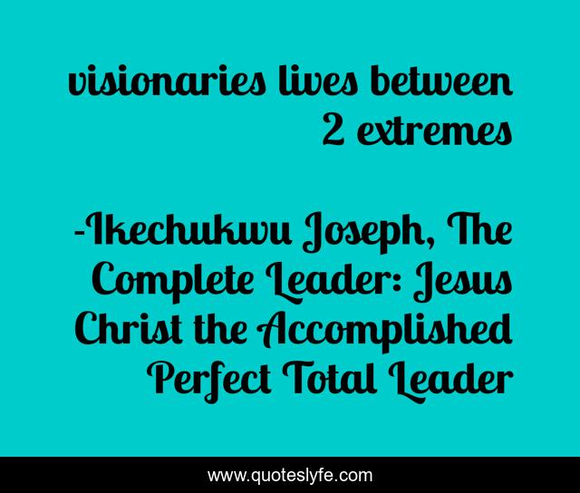"Ikechukwu Joseph, The Complete Leader: Jesus Christ the Accomplished Perfect Total Leader Quotes." Quoteslyfe.com, 2025. Mon. 08 Dec. 2025. <https://www.quoteslyfe.com/quote/visionaries-lives-between-2-extremes-236310>.