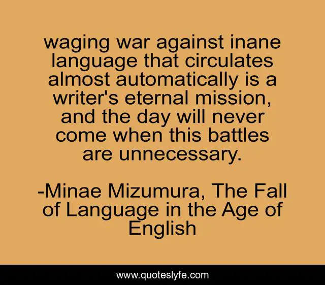 "Minae Mizumura, The Fall of Language in the Age of English Quotes." Quoteslyfe.com, 2025. Sat. 06 Dec. 2025. <https://www.quoteslyfe.com/quote/waging-war-against-inane-language-that-circulates-186901>.