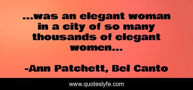 "Ann Patchett, Bel Canto Quotes." Quoteslyfe.com, 2025. Sat. 06 Dec. 2025. <https://www.quoteslyfe.com/quote/was-an-elegant-woman-in-a-city-280801>.
