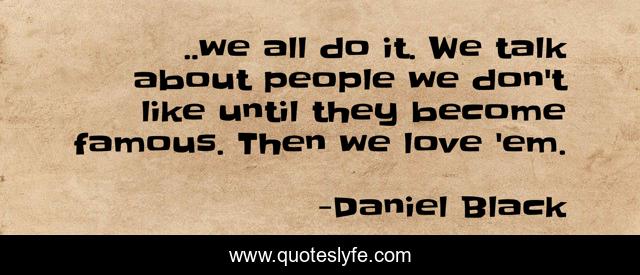 This page presents the quote "..we all do it. We talk about people we don't like until they become famous. Then we love 'em.". Author of this quote is Daniel Black. .