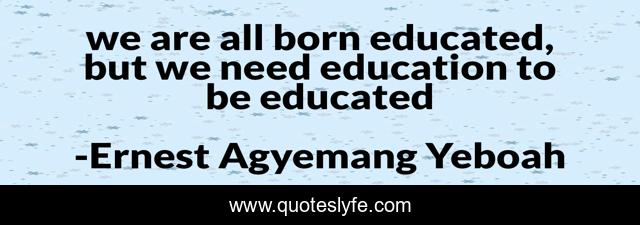 This page presents the quote "we are all born educated, but we need education to be educated". Author of this quote is Ernest Agyemang Yeboah. This quote is about educational-footpath-of-life, educational-philosophy, educational, learning-by-doing, mediocrity, education, learning-from-mistakes,.