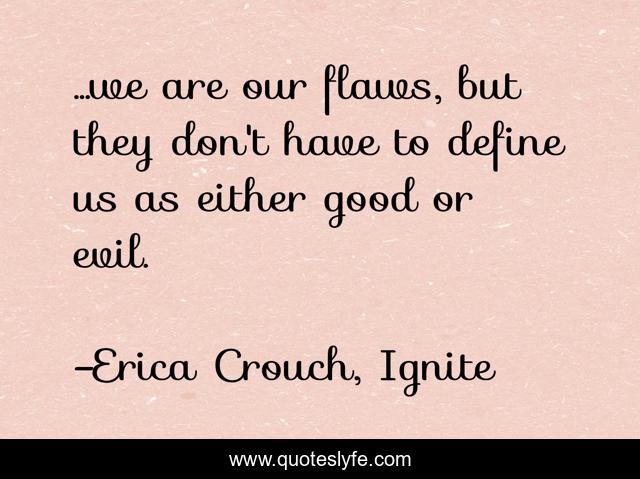 This page presents the quote "...we are our flaws, but they don't have to define us as either good or evil.". Author of this quote is Erica Crouch, Ignite. This quote is about good-vs-evil, erica-crouch, angels, ignite,.