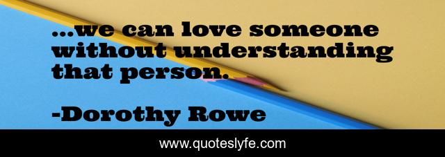 This page presents the quote "...we can love someone without understanding that person.". Author of this quote is Dorothy Rowe. .