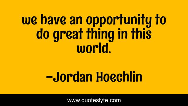 This page presents the quote "we have an opportunity to do great thing in this world.". Author of this quote is Jordan Hoechlin. This quote is about opportunitytunity, life, world,.