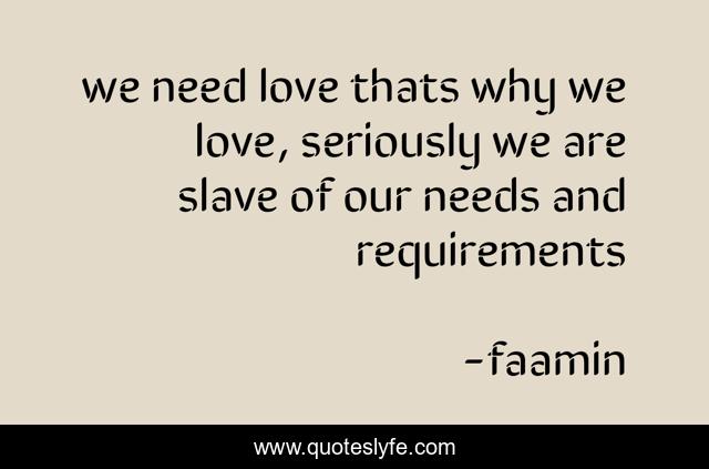 This page presents the quote "we need love thats why we love, seriously we are slave of our needs and requirements". Author of this quote is faamin. .