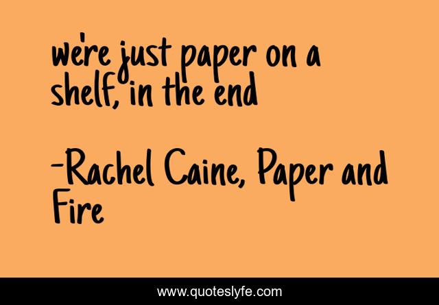 "Rachel Caine, Paper and Fire Quotes." Quoteslyfe.com, 2025. Sat. 06 Dec. 2025. <https://www.quoteslyfe.com/quote/we-re-just-paper-on-a-shelf-258908>.