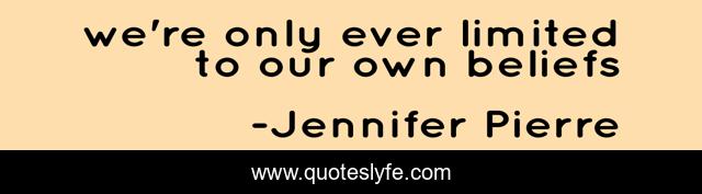 This page presents the quote "we're only ever limited to our own beliefs". Author of this quote is Jennifer Pierre. This quote is about limitations, life, beliefs,.