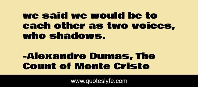 This page presents the quote "we said we would be to each other as two voices, who shadows.". Author of this quote is Alexandre Dumas, The Count of Monte Cristo. This quote is about shadows, life, love, lovers-sadness, affection, women,.