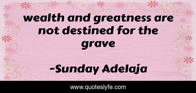 This page presents the quote "wealth and greatness are not destined for the grave". Author of this quote is Sunday Adelaja. This quote is about wealth, calling, purpose, destined, greatness, grave, fulfillment,.