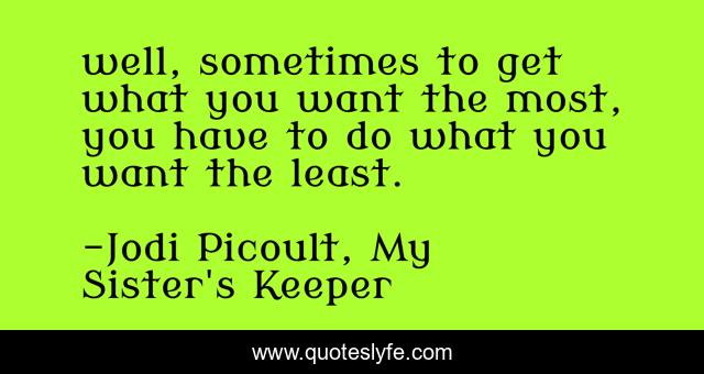 This page presents the quote "well, sometimes to get what you want the most, you have to do what you want the least.". Author of this quote is Jodi Picoult, My Sister's Keeper. This quote is about my-sister-s-keeper, wisdom,.