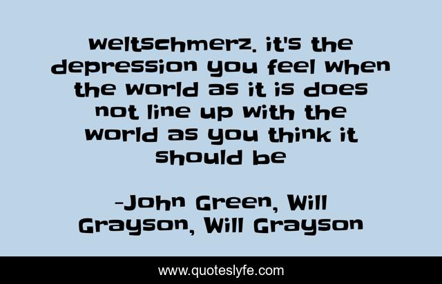 This page presents the quote "weltschmerz. it's the depression you feel when the world as it is does not line up with the world as you think it should be". Author of this quote is John Green, Will Grayson, Will Grayson. .