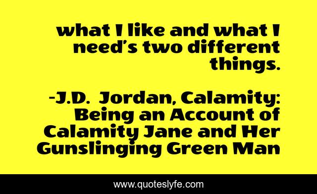 "J.D. Jordan, Calamity: Being an Account of Calamity Jane and Her Gunslinging Green Man Quotes." Quoteslyfe.com, 2025. Fri. 05 Dec. 2025. <https://www.quoteslyfe.com/quote/what-I-like-and-what-I-need-219059>.