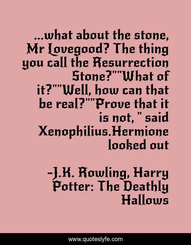 "J.K. Rowling, Harry Potter: The Deathly Hallows Quotes." Quoteslyfe.com, 2025. Fri. 05 Dec. 2025. <https://www.quoteslyfe.com/quote/what-about-the-stone-Mr-Lovegood-The-175862>.