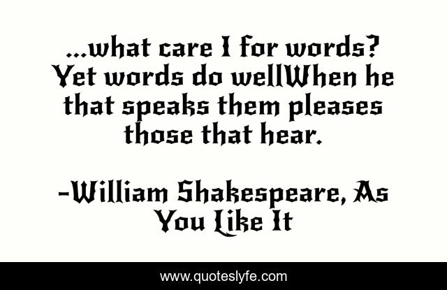 "William Shakespeare, As You Like It Quotes." Quoteslyfe.com, 2025. Sat. 06 Dec. 2025. <https://www.quoteslyfe.com/quote/what-care-I-for-words-Yet-words-49302>.