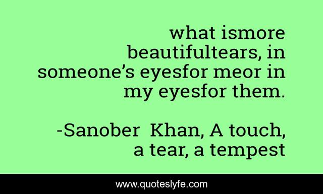 "Sanober Khan, A touch, a tear, a tempest Quotes." Quoteslyfe.com, 2025. Fri. 05 Dec. 2025. <https://www.quoteslyfe.com/quote/what-ismore-beautifultears-in-someone-s-eyesfor-113065>.