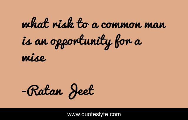This page presents the quote "what risk to a common man is an opportunity for a wise". Author of this quote is Ratan Jeet. .