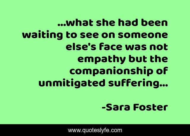 This page presents the quote "...what she had been waiting to see on someone else's face was not empathy but the companionship of unmitigated suffering...". Author of this quote is Sara Foster. .