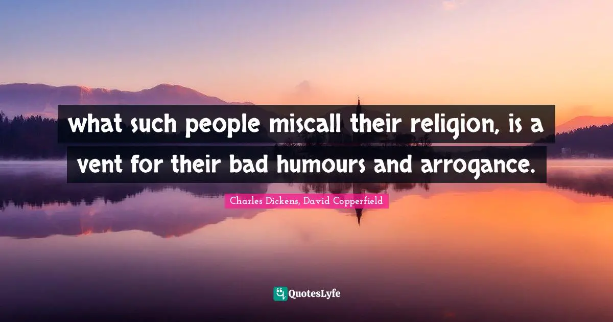 This page presents the quote "what such people miscall their religion, is a vent for their bad humours and arrogance.". Author of this quote is Charles Dickens, David Copperfield. This quote is about religion, terrorism,.