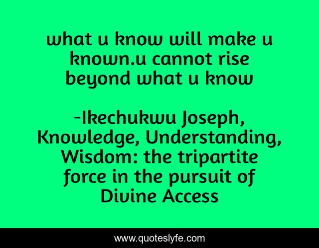 "Ikechukwu Joseph, Knowledge, Understanding, Wisdom: the tripartite force in the pursuit of Divine Access Quotes." Quoteslyfe.com, 2025. Fri. 05 Dec. 2025. <https://www.quoteslyfe.com/quote/what-u-know-will-make-u-known-31332>.