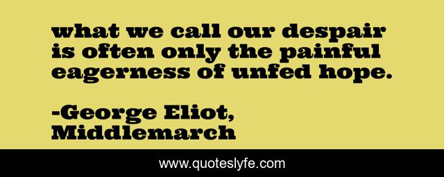 This page presents the quote "what we call our despair is often only the painful eagerness of unfed hope.". Author of this quote is George Eliot, Middlemarch. .