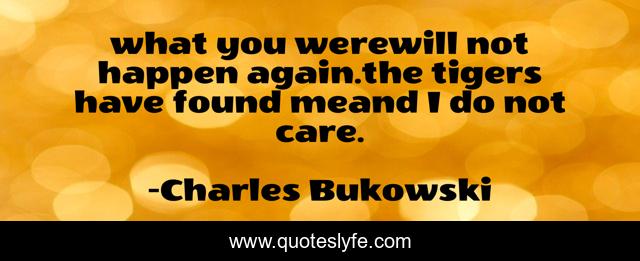 This page presents the quote "what you werewill not happen again.the tigers have found meand I do not care.". Author of this quote is Charles Bukowski. This quote is about survival, for-jane,.