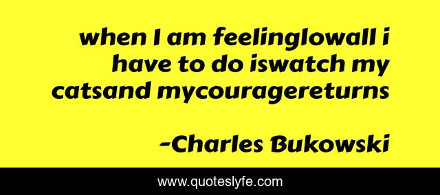 This page presents the quote "when I am feelinglowall i have to do iswatch my catsand mycouragereturns". Author of this quote is Charles Bukowski. This quote is about poem, courage, cats, pets, poetry,.