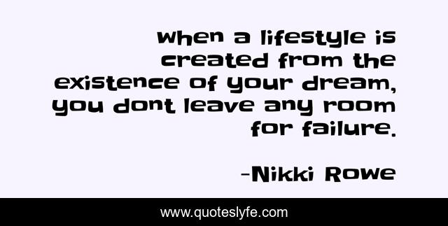 This page presents the quote "when a lifestyle is created from the existence of your dream, you dont leave any room for failure.". Author of this quote is Nikki Rowe. This quote is about rise-above, life, stay-focused, dream, greatness,.