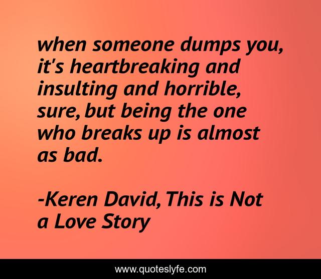 This page presents the quote "when someone dumps you, it's heartbreaking and insulting and horrible, sure, but being the one who breaks up is almost as bad.". Author of this quote is Keren David, This is Not a Love Story. This quote is about relationships, heartbreak,.