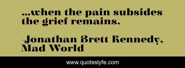 "Jonathan Brett Kennedy, Mad World Quotes." Quoteslyfe.com, 2025. Sat. 06 Dec. 2025. <https://www.quoteslyfe.com/quote/when-the-pain-subsides-the-grief-remains-123120>.