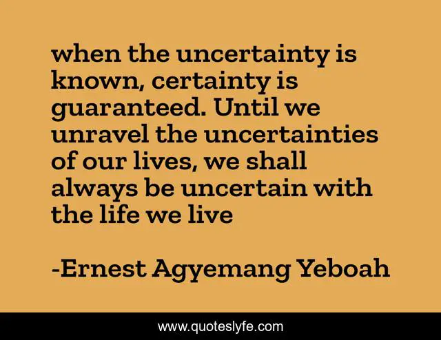 "Ernest Agyemang Yeboah Quotes." Quoteslyfe.com, 2026. Sat. 03 Jan. 2026. <https://www.quoteslyfe.com/quote/when-the-uncertainty-is-known-certainty-is-166595>.